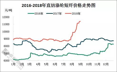 圖3 2016-2018年江蘇直紡滌短價(jià)格走勢(shì)圖
