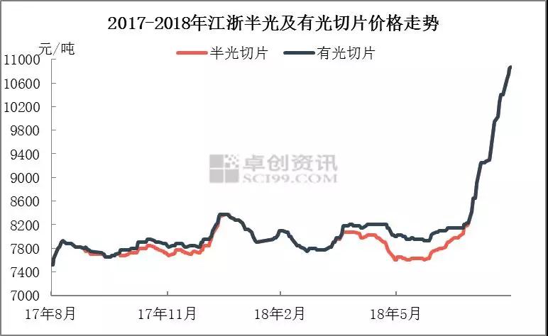 圖1 2017-2018年江浙半光及有光切片價(jià)格走勢(shì)