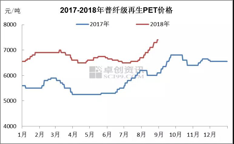 圖4 2017-2018年普纖級(jí)再生PET價(jià)格