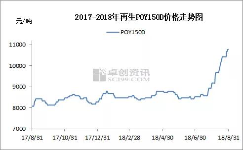 圖7 2017-2018年再生POY150D價(jià)格走勢(shì)圖